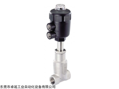 从外部控制的直座阀,由一个气动的活塞驱动装置和一个二位二通直座阀体构成。驱动装置以 PA 或适合特殊运行条件的 PPS 材料制成。可靠的、能够自动调整的压盖确保了高密封性。在这种免维护的坚固阀门上,可以加装各种用于显示位置、限制冲程或进行手动操作的配件。