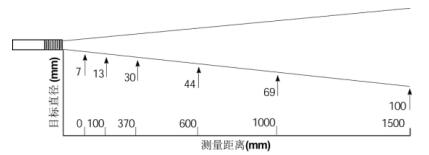 安装距离与测量尺寸:JTCIF300光学分辨率是15:1,相应的测量视场可以参照所附光路图近似计算。为提高测量精度,测量时应保证被测目标的尺寸大于测量视场,特别是当目标或测温仪有晃动的现场。