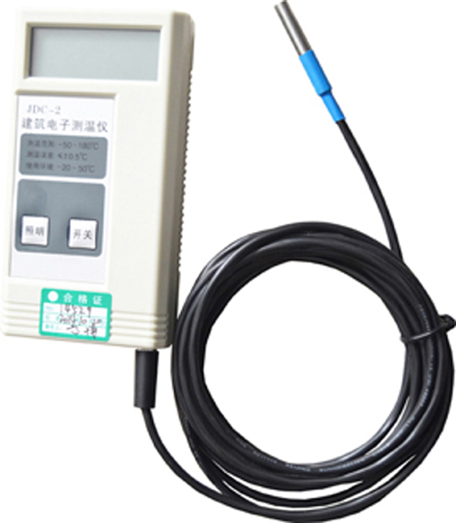 JDC-2 型便携式建筑电子测温仪是根据我国建筑行业施工特点和有关技术规范研制的专业化测温仪器,可直观、准确、快捷地数字显示被测温度,可靠性好、使用范围广、宽温操作环境、体积小重量轻、操作简单、携带方便、适合工地及野外作业;主要用于建筑、建材、水利、电力、冶金、石化、港口、道桥、市政等基本建设工程。