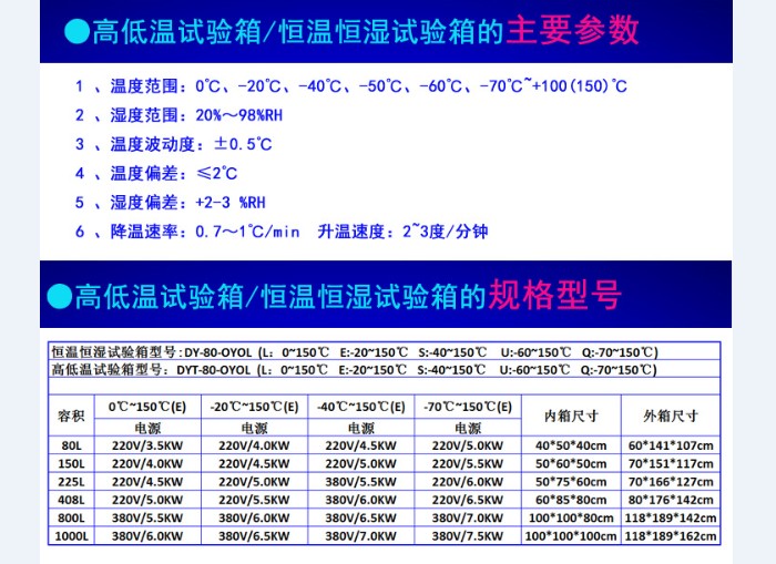 1.温度:-70℃ ~150℃, -40℃ ~150℃ , - 20℃ ~150℃,0℃ ~150℃(内选)