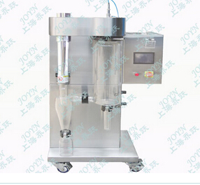 JOYN-8000T小型实验室喷雾干燥机主要适用于高校、研究所和食品医药化工企业实验室生产微量颗粒粉末,对所有溶液如乳浊液、悬浮液具有广谱适用性, 适用于对热敏感性物的干燥如生物制品、生物农药、酶制剂等,因所喷出的物料只是在喷成雾状大小颗粒时才受到高温,故只是瞬间受热,能保持这些活性材料在干燥后仍维持其活性成份不受破坏。