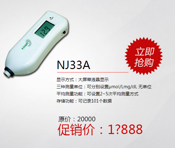 我公司作为浩顺NJ33黄疸测试仪山东总代现货供应NJ33/NJ33A黄疸测试仪,所有规格型号均顺丰快递,款到当日即可发货,7天无理由退换!