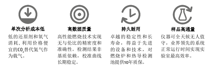 传统的高温燃烧法定氮仪采用热 金属(铜、钨)去结合过量的O2同时