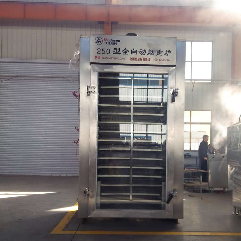烟熏炉是肉制品熟化过程中必不可少的设备之一,主机框架夹层均填充耐高温材料一次成型,使保温效果增强,密封性好,节能。本机具有蒸煮、干燥、烘烤、烟熏、排风等功能。经过十几年的研制生产,根据客户的要求及市场反馈信息,对产品进行了更合理的改进,使其加热速度、烟熏效果都达到理想的效果。