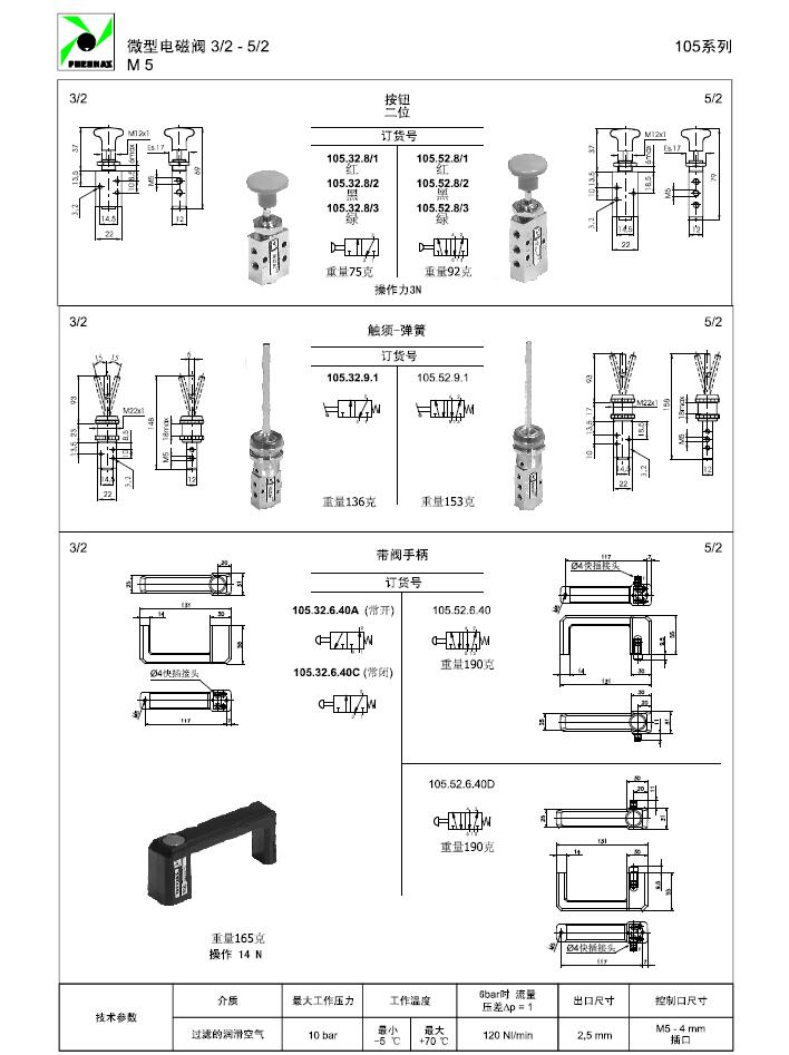 105系列和200系列涵概了不同类型的微型阀以有启动阀。M5线圈是配备105和200系列的G1/8、G1的微型阀,由于其平衡阀心的结构,这些阀可以与3位或5位替换。