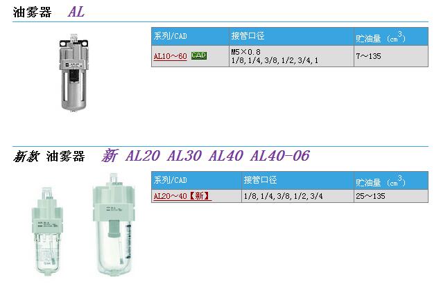 SMC油雾器AL30-F02-R SMC油雾器AL40-F02B-2 SMC油雾器AL430-02-2S-2-L SMC油雾器AL50-N06-3Z SMC油雾器ALF600-10