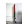 该顶装式磁翻板液位计由本体(由上、下导管组成)、翻板箱(由红、白双色磁性小翻板组成)、浮子(由磁体、顶杆、浮筒组成)以及液位变送器等组成,其结构如图所示。工作原理为:容器内的浮筒(按不同介质和压力针对研制),在下导管中随液面高度的变化而上下浮动并通过顶杆使磁体在上导管内上下移动,促使本体外的翻板翻动并用红、白颜色来指示液面高度,同时液位变送器将液位信号传送至控制中心进行液位指示和控制,也可通过计算机进行集中监控。