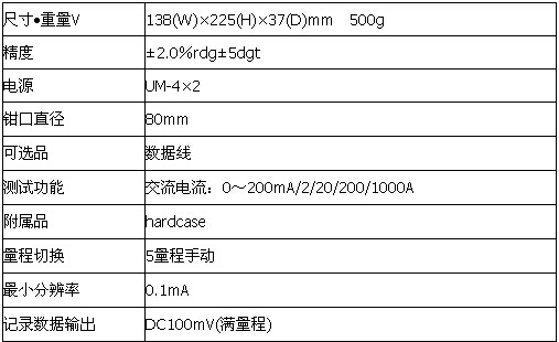 MCL-800D 日本万用Multi漏电电流钳形表性能指标: