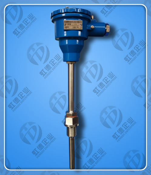 隔爆热电阻和装配式热电阻的结构,原理基本相同,所区别的是,隔爆型产品的接线盒(外壳)在设计上采用防爆特殊的结构,接线盒用高强度铝合金压铸而成,并具有足够的内部空间、壁厚和机械强度,橡胶密封圈的热稳定性均符合国定防爆标准,所以,当接线盒内部的爆炸性混合气体发生爆炸时,其内压不会破坏接线盒,而由此产生的热能不能向外扩散一传爆, 由于产品采用是上述防爆特殊结构,使产品完全符合使用在dIIBT4至dIICT6防爆温度级别区间范围内,只要用户严格遵守产品使用规则,产品就能达到可靠的防爆效果。