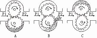 在仪表测量室进出两端液体压差的在作用下,一对椭圆齿轮在轴承上不停地转动并排出液体,测出椭圆齿轮的转数即可知道流经仪表液体的总值。设椭圆齿轮旋转一周排出的体积量Q,单位时间椭圆齿轮旋转次数为N,则在该时间内流过的液体体积量为NQ。