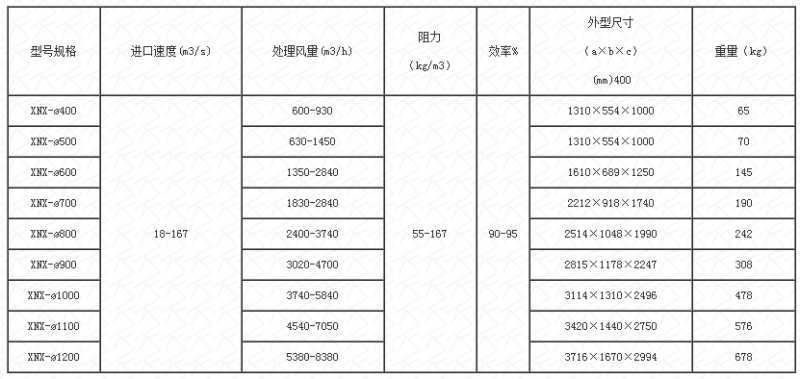 XNX型旋风除尘器技术性能: