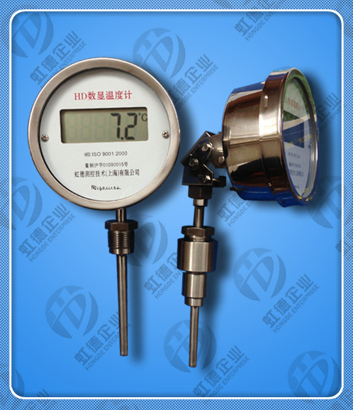 HD智能数显温度计它克服了指针表精度低、视值误差大,尤其是在振动场合,指针及传动机构易损坏和不稳定等缺点。广泛适用于制药、食品、锅炉、电站、油田管线、油罐、制酒、化工、纺织、造纸、自来水、酿造、石油化工等行业测温使用。尤其适合用于震动性、腐蚀性、冲击性、无电源供电等恶劣的场所。