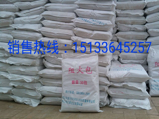 防火包是的电缆防火材料,该防火包形状如小枕头,俗称“防火枕"外层用编织紧密,耐用的玻璃纤维制成袋状,内部填充特种耐火、隔热材料和膨胀材料。防火包具有不燃性,在高温下膨胀和凝固,形成一堵隔热隔烟的的不燃性密封墙,测试耐火限可达4 小时以上。该防火包防火抗潮性能好,不怕受潮失效,不含石棉等有毒成份。该产品多种规格包装,施工十分方便,便于电缆的更换及维修,由于该防火包密度小,特别适用于需要轻质材料封堵的大型孔洞或电缆架等。