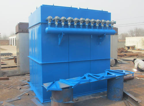 含尘气体由进气口进入灰斗、式通过敞开法兰口进入滤袋室,含尘气体透过滤袋过滤为净气进入净气室,再经净气室排气口,由风机排走。粉尘积附在滤袋的外表面,且不断增加,使袋除尘器的阻力不断上升,为使设备阻力不超过1200Pa,袋除尘吕能断续工作,需定期清除滤袋上粉尘。清灰是由程序控制器定时顺序起动脉冲阀,使包内压缩空气(0.5~0.7MPa)由喷吹管孔眼喷出(称一次风)通过文氏管诱导数倍于一次风的周围空气 (称二次风),进入滤袋使滤袋在瞬间急剧膨胀,并伴随着气流的反方向作用抖落粉尘,附于袋表的粉尘迅速脱离滤袋落入灰斗(或灰仓),粉尘由卸灰阀排出,达到清灰的目的。