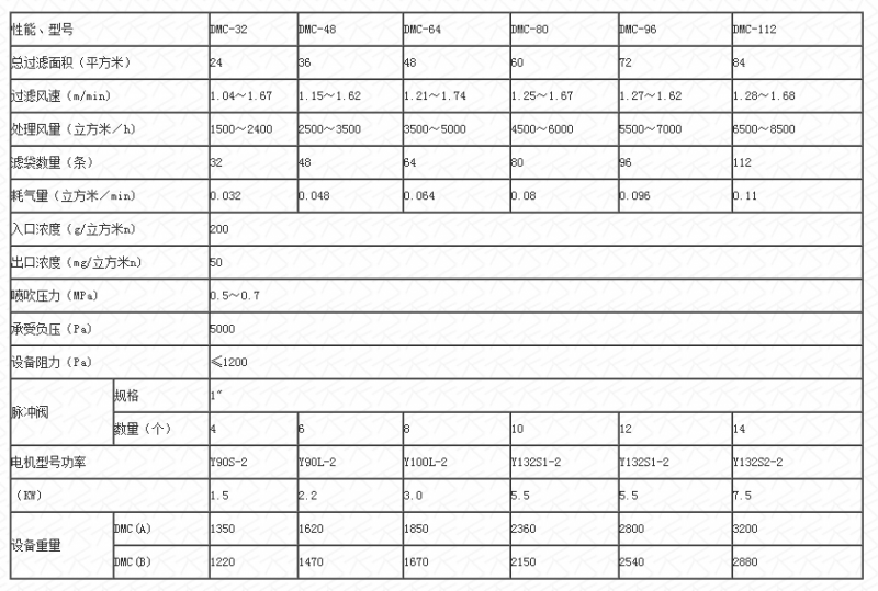 本系列除尘器暂时有六个规格,每种规格又可分为标准带灰斗式A型和敞开法兰式(无灰斗)B型二种。其结构主要由过滤室、滤袋、净气室、灰斗、卸灰阀、脉冲喷吹装置、电控箱等组成,箱体全部采用焊接结构,检修门用泡沫橡胶条密封,保证除尘器严密不漏风。