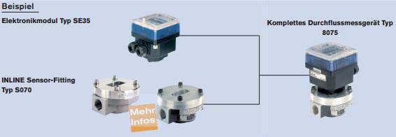 BURKERT带有显示器椭圆齿轮流量计8075利用开关输出端,可直接控制阀门,由此在监控系统内部建立一个简单的两点式调节回路。传送器由一个紧凑型接头 (S070) 和一个电子设备模块 (SE35) 构成,通过一个卡口接头可以将两者快速、简单地相连。