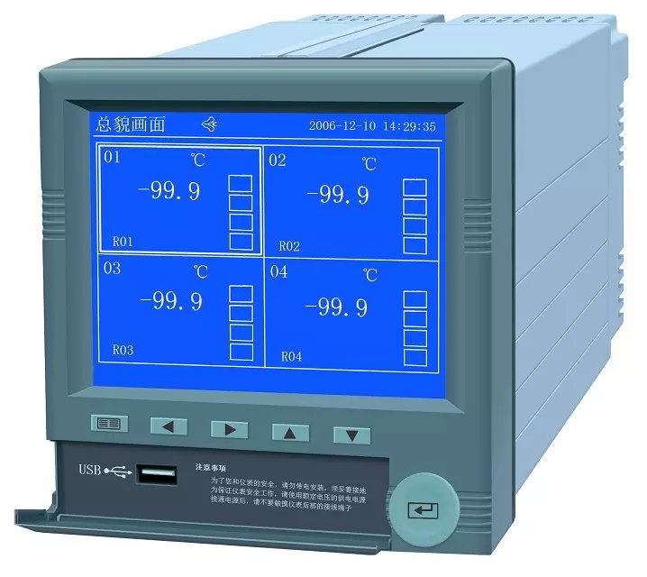 江苏先达仪表基本型无纸记录仪具有实时数据显示画面、曲线显示画面以及棒图数据显示画面,同时,可以与微型打印机相连接,实现现场打印功能,与声光报警器连接,实现现场声光报警功能。高清蓝色无纸记录仪是无纸记录仪,多具有16个模拟量输入通道、2个脉冲量输入通道、15个报警输出通道、4个模拟量输出通道、6个时间比例输出通道、4个PID控制回路及100mA配电输出,并具有1个RS-232C通讯接口、1个隔离型RS-485通讯接口和1个U盘接口。采集的数据存储在NAND Flash存储器中,它能以曲线、工程量数据和百分量等多种形式显示实时数据或追忆历史数据,也可以将数据通过RS-232C或RS-485通讯接口远传。