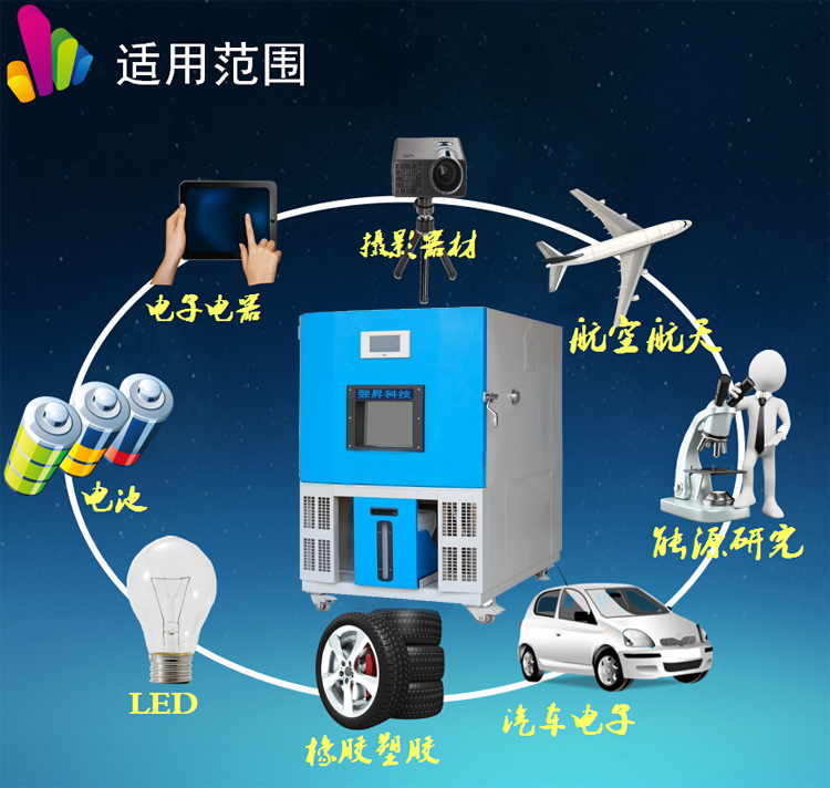 该仪器适用于工业产品高温、低温的可靠性试验。对电子电工、汽车摩托、航空航天、船舶兵器、高等院校、科研单位等相关产品的零部件及材料在高温、低温(交变)循环变化的情况下,检验其各项性能指标。产品具有较宽的温度控制范围,其性能指标均达到标准GB10592-89高低温试验箱技术条件,适用于按GB2423.1、GB2423.2《电工电子产品环境试验 试验A:低温试验方法,试验B:高温试验方法》对产品进行低温、高温试验及恒定温热试验。产品符合GB2423.1、GB2423.2、GJB150.3、GJB150.4、IEC、MIL标准。