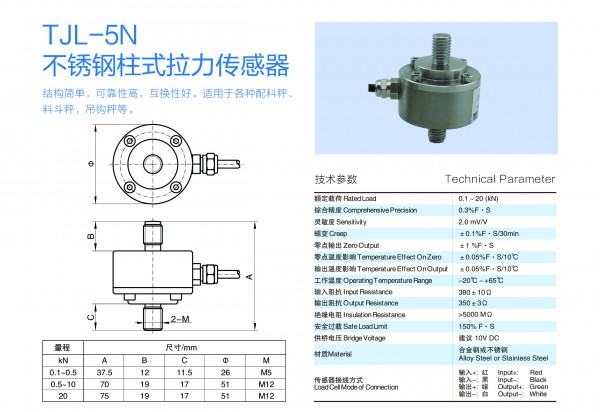 产品简介TJL-5N不锈钢柱式拉力传感器厂家供应商