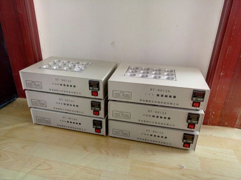 HT-9012A型COD恒温加热器(消解仪)是经典方法分析污水中一种采用空气冷凝代替水冷凝测定化学耗氧量的加热回流装置。它采用温控器,升温速度快,温度恒定均匀,操作方便,是一种实验手段仪器化新产产品。经环保局环境监测仪器质量监督检验中心测试表明,结果符合标准方法ISO06066-86的要求。 采用数字化设定、显示加热温度,自动控制加热温度,可设定加热时间。升温速度快,温度恒定均匀,耗电小,操作简单,性能稳定可靠,广泛用于环保、医疗、卫生、食品、自来水、造纸、污水处理、印染、石化、冶金、院校等行业的水质检测。COD恒温加热器COD消解仪cod回流加热消解仪COD恒温加热器COD消解仪cod回流加热消解仪COD恒温加热器COD消解仪cod回流加热消解仪