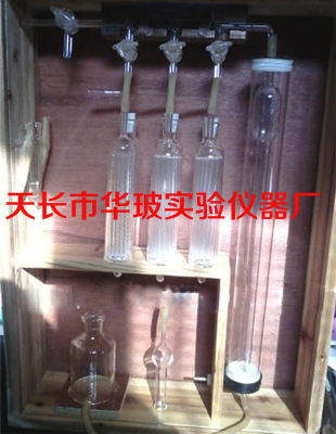 每套包括下列零件:1、气体吸受瓶 3只;2、气体量管连外套 1只;3、梳形活塞排 1只;4、250ml水准瓶 1只;5、U形干燥管 1只;6、直形干燥管 1只;7、弯形接管 3只;8、木箱及其它配件 1套。