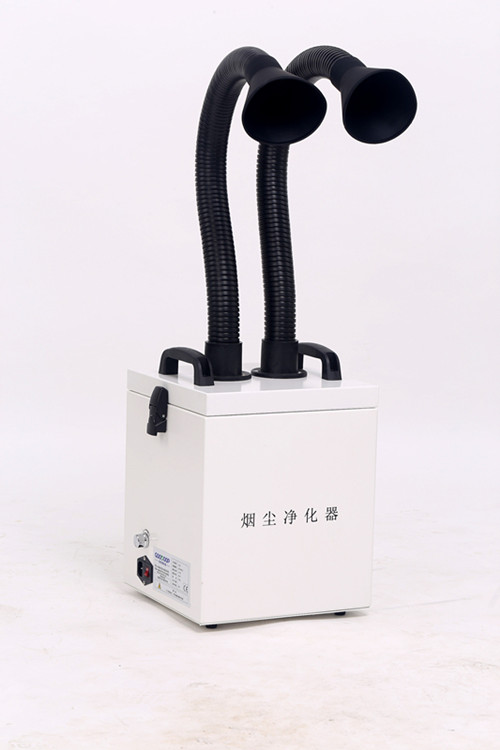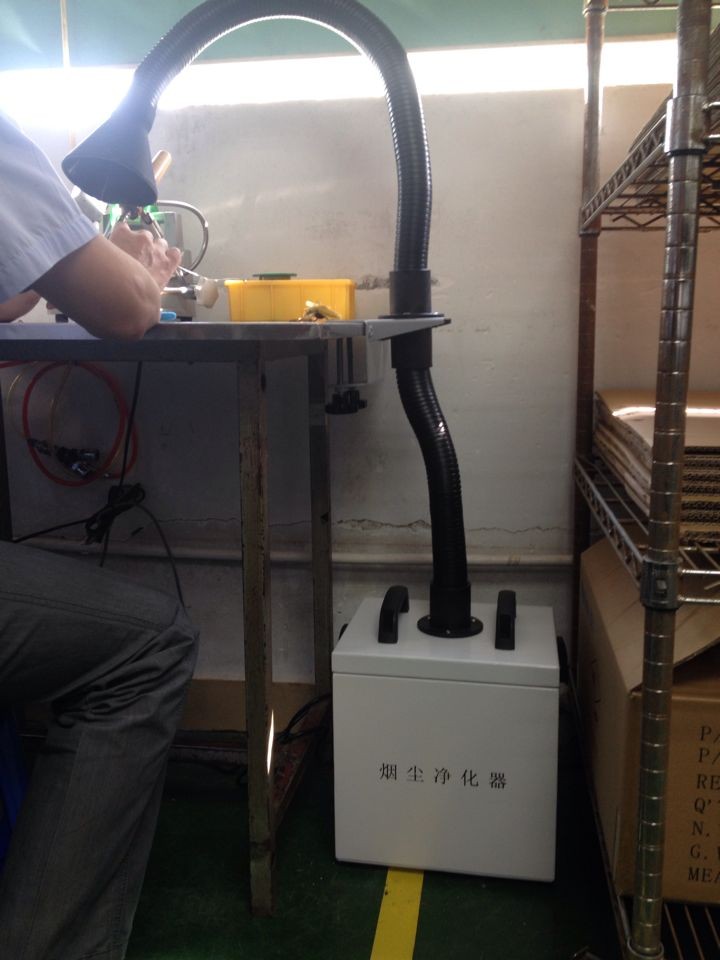 G101烟雾净化过滤系统能有效的吸收并过滤在电烙铁焊接,激光打标,雕刻等加工过程中产生的烟雾或粉尘,同时对其中的有毒有害的气体和粉尘(如碳氢化合物,氢化合物等)起到吸附和过滤的效果,并能达到99.97%,从而防止环境污染。