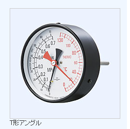 温水ボイラーの温度・圧力が同一目盛に指示された直読しやすいバイメタル温度計付圧力計です。
