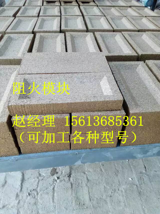 阻火模块 防火膨胀模块 产品特点: ①耐火时间长:由于采用的热膨胀防火技术,产品耐火时间长。经防火建筑材料监督检验中心检验,耐火时间达180min以上;经本公司实验室检测,耐火时间达300分钟以上,超过规定的3小时标准。 ②有效期长:由于采用无机膨胀材料和少量胶联材料,经加速老化试验证明,有效期可达15年以上。阻火包有效期一般为三年。 ③耐水、耐油性能好:试验证明,在水里、柴油里浸泡1年,产品无溶胀、变形、坍塌。 ④机械强度高、有弹性:由于采用有机高分子材料胶联、模压固化,实测抗压强度5.6MP,比标准(0.8MP)高6倍,是阻火包(0.05MP)的112倍。