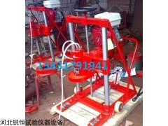 到达所取深度后反向摇动给进手柄,将钻头在地面内取出,然后即可停钻,先关闭汽油发动机然后关水,然后用芯样钳将芯样夹出。
