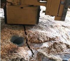 一种大型静爆拆除岩石的设备是以动力站(有电动型动力站和柴油机型动力站)产生的高压液压油为能量源,通过油管输送到各个劈裂器的油缸管,控制劈裂器内的活塞杆的推动伸缩,并巧妙的应用了楔器原理,一种大型静爆拆除岩石的设备使劈石作用力达到几百吨甚至上千吨,而岩石和混凝土虽然外部抗压强度很大,但是其内部的抗拉强度却相对有限,正是由于彼此的这些特性,所以用劈裂器可以在几秒钟内轻易地把巨石劈裂开,使坚硬的铁矿石从山体中分离。一种大型静爆拆除岩石的设备