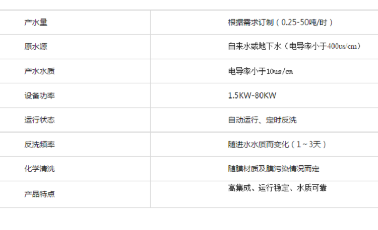 根据用户的水质要求,推荐选用、成熟、出水水质稳定、系统运行稳定的一级反渗透作为系统的主脱盐设备;系统运行费用低,易于实现自动化。反渗透水处理系统具有很好的经济性。
