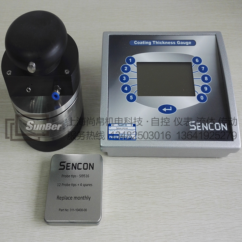 在Sencon涂层厚度探头上,的磨损部位就是探头,所以探头必须每四个月更换一次。可从Sencon处获取每包5个, 包12个月更换日期编码的探头 (另加4备件)。
