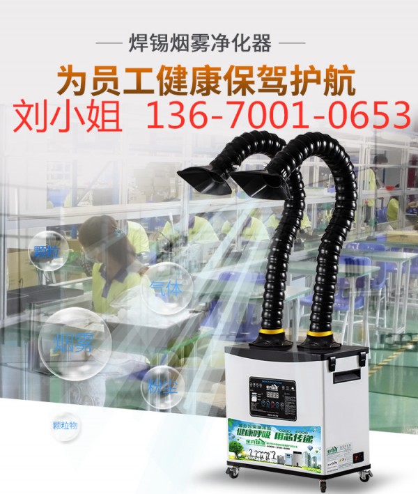 在这些场合中工作,会产生着大量的烟雾和烟尘。比如锡焊工作中使用的材料不同、添加物不同、焊接温度不同,都会产生不同的烟雾烟尘和味道,该烟雾净化器是保护操作者的理想产品。