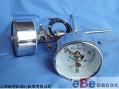 上海轴向双支远传电接点双金属温度计WTYY2-1030-X2既满足现场测温需求,亦满足远距离传输需求,远传双金属温度计可以直接测量各种生产过程中的 -40~+600℃范围内液体、蒸气和气体介质以及固体表面的温度测量。