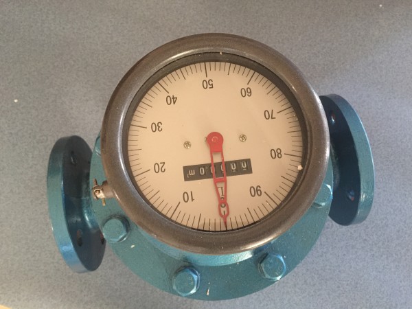 计量室内主要有一对椭圆齿轮与盖板构成初月形空腔作为流量的计量单位。椭圆齿轮靠流量计进出口处的压力差推动而旋转,从而不断地把进口处的液体经初月形空腔计量后送到出口处,每转流过的液体量是图中新月腔的四倍,由密封联轴器将椭圆齿轮旋转的总数,以及旋转的快慢传递给计数机构,通过指针显示和字轮累积,