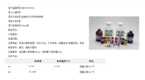 GBW(E)070001 金银成分分析标准物质]信息由会员[