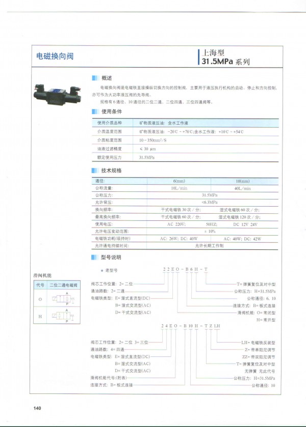 电磁换向阀24DI1-B10H-TLH、24E10-B10H-T、24D11-B10H-TLH、34BH-B10H-T、34E0-F6B、34EO1-F10B、24EO1-F6B、34EO-H10B-T