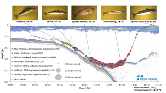 Deep Vision系统正在持续发展,旨在开发一套可对鱼类自动测量和分类并将种类和长度的数字信息实时发送至船上工作室的系统。结合分类机制,该套系统对商业渔业将有很大助益。其可以帮助捕鱼者提前掌握水域的鱼类分布和分类情况。Deep Vision系统运用到商业渔业中将会是一个巨大的技术飞跃,可以减少副渔获并保证渔业更可持续发展。