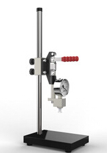 2、采用台式表座和杠杆把手,通过表头固定真空表而不是表壳传力,可以很轻松的完成打表测定,也不会因为表壳受