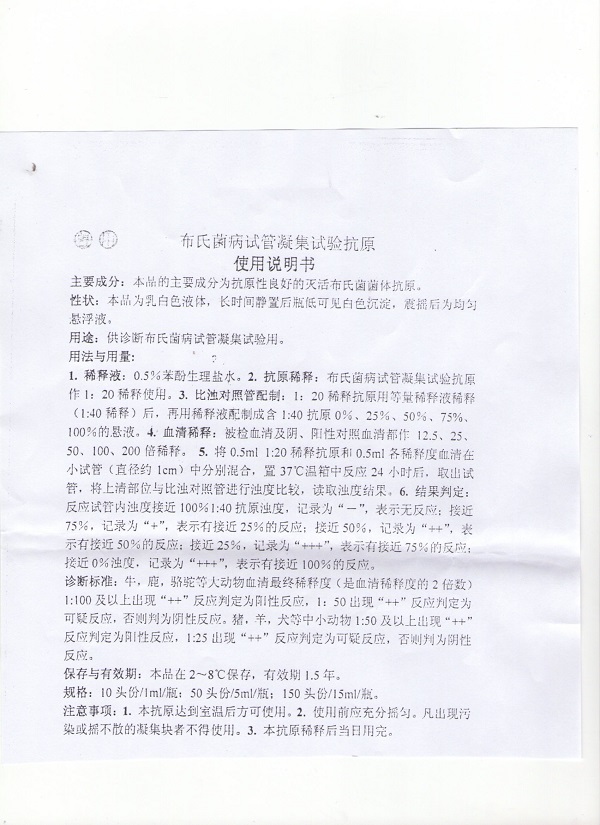 布鲁氏菌病试管凝集试验抗原,布鲁氏菌虎红平板凝集试验抗原,布鲁氏菌阴阳性血清--北京威瑞谷生物