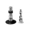 真空吸盘的安装方式有螺纹连接(包括内螺纹和外螺纹、无缓冲能力)、面板安装和用缓冲体连接。真空吸盘的取出方向有轴向(SMCZPT型)和侧向(SMCZPR型快换接头式和ZPY型带到钩式)。