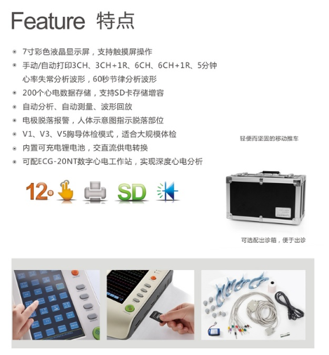 21. 存储:自带50例心电图数据,加SD卡可存储2000例以上