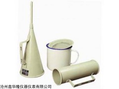 该仪器是一个漏斗状容器, 末端为一个流出管, 仪器装有手柄,手柄上有二个钥匙孔,使挂在墙上钉子上时,仪器保持垂直,一只圆筒状隔 成两部的量杯,正反两面都可以使用,一面的容量为 500 毫升,另一面的容量 为 200 毫升,另外随仪器附有盛泥浆的筛网和圆筒,泥浆筒的容量约 1000 毫 升,其直径与粘度计上口相同,所以筛可以复在两者之上,筛网为滤泥浆之用. 筛孔为每时 16 孔