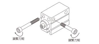 固定小型自由安装气缸时的螺牙锁紧力矩,请使用适合锁紧力矩来锁紧螺丝;
