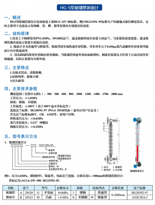 液位计厂家HG-5型玻璃管波面计具有结构简单、经济实用、安装方便、工作可靠、使用寿命长等优点。
