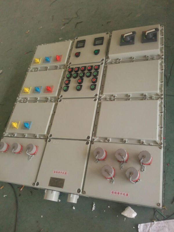防爆配电箱总开关配置:C65或CM1支路开关配置:2P或3P C65系列开关以及各种带漏电保护功能。CM1等塑料外壳式断路器母线腔配置:内部设有母线和防爆指示灯。接线腔配置:接线腔设置的接线端子为TC系列或UK系列。引入口配置: 引入装置规格为G1/2″-G3″,并可根据要求进行特制。
