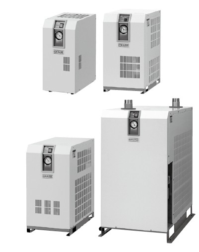 1、SMC冷冻式干燥器(IDF和IDU系列):利用冷媒与压缩空气进行热交换,把压缩空气冷却至2~10℃的范围,以除去压缩齐齐中的水分(水蒸气成分)。IDF为标准型,IDU为高温型;另外IDUS和IDFS为带不锈钢热交换器型。