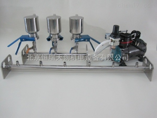 不锈钢多联式串联过滤器是一种应用于化学实验室中的溶液过滤装置。目前,实验室在对溶液进行过滤时,一般采用玻璃材质砂芯过滤装置,这种方法每次只能过滤一个样品,过滤速度慢,效率低,人工劳动强度大。同时玻璃材质易碎不易高温消毒。本仪器的目的是为了一次同时对多个样品进行过滤,提高实验工作效率。同316L卫生级不锈钢材质耐酸碱,耐腐蚀,易于高温消毒,使分析结果更加稳定可靠。