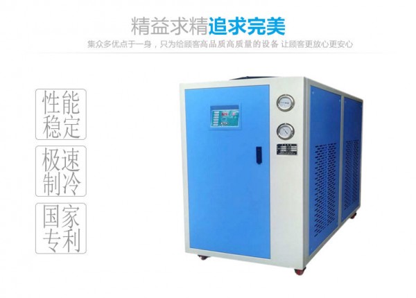 冷水机应用于塑料加工机械模具冷却,能够大大提高塑料制品表面光洁度,减少塑料制品表面紋痕和内应力,使产品不缩水、不变形,便于塑料制品的脱模,加速产品定型,从而大的提高生产效率。该冷水机结构紧凑,方便移动。工业冷却机为客户所欢迎的是具备微电脑智能控制,温度值数字显示,任意可调。采用进口压缩机,内置安全保护,运行可靠,效率高,噪音低,省电耐用。