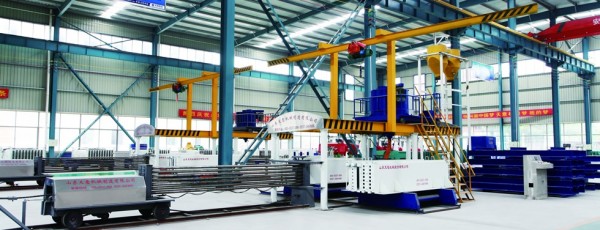 石膏板墙板生产线是我公司严格按照相关要求, 结合实际生产经验和外技术,研发的轻质墙板自动化生产设备。该设备上料系统计量准确,自动化程度高;搅拌系统搅拌均匀,结构紧凑,外形美观,运转平稳,操作方便,生产效率高;浇筑模具精度准确,严密性好,安装方便。所产板材外形稳定,不变形,不开裂;模具牵引,转换系统安全可靠,操作简单,节省空间,处于业内水平。